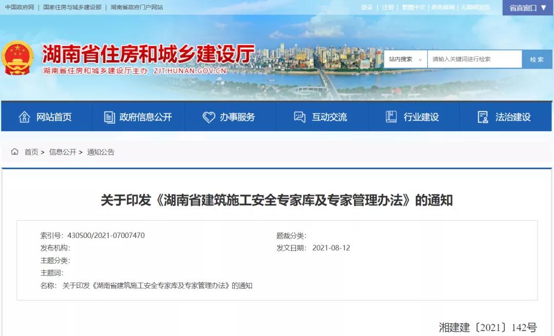 省住建廳發(fā)布《湖南省建筑施工安全專家?guī)旒皩<夜芾磙k法》