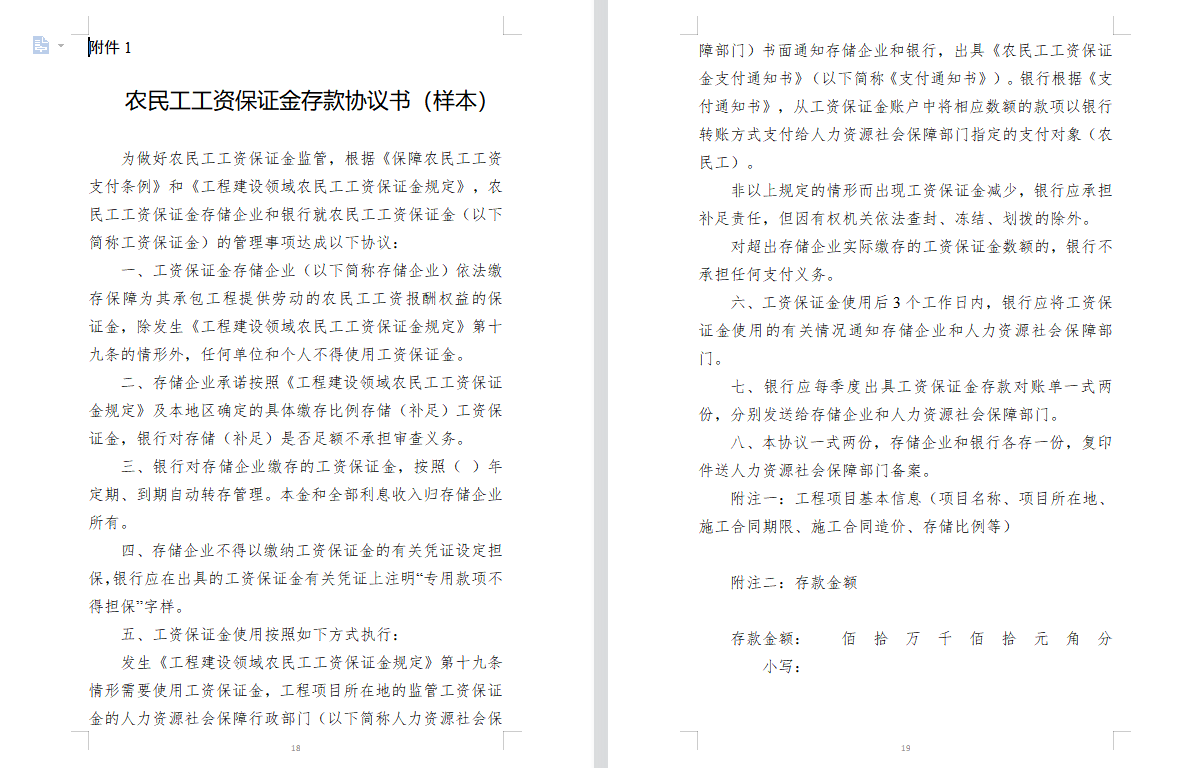 附件:1.農(nóng)民工工資保證金存款協(xié)議書(樣本)