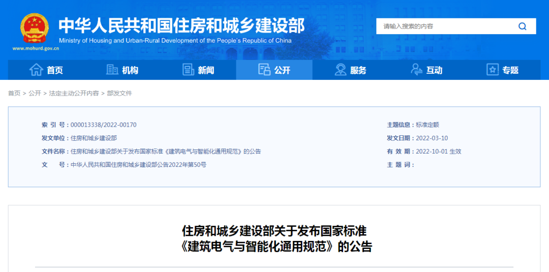 住房和城鄉(xiāng)建設(shè)部關(guān)于發(fā)布國(guó)家標(biāo)準(zhǔn)《建筑電氣與智能化通用規(guī)范》的公告