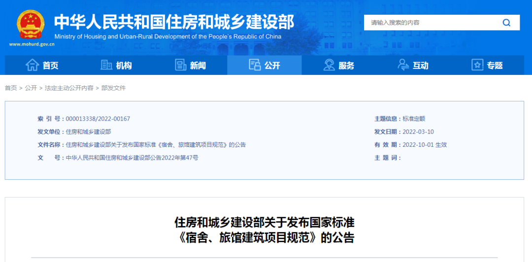 住房和城鄉(xiāng)建設(shè)部關(guān)于發(fā)布國(guó)家標(biāo)準(zhǔn)《宿舍、旅館建筑項(xiàng)目規(guī)范》的公告