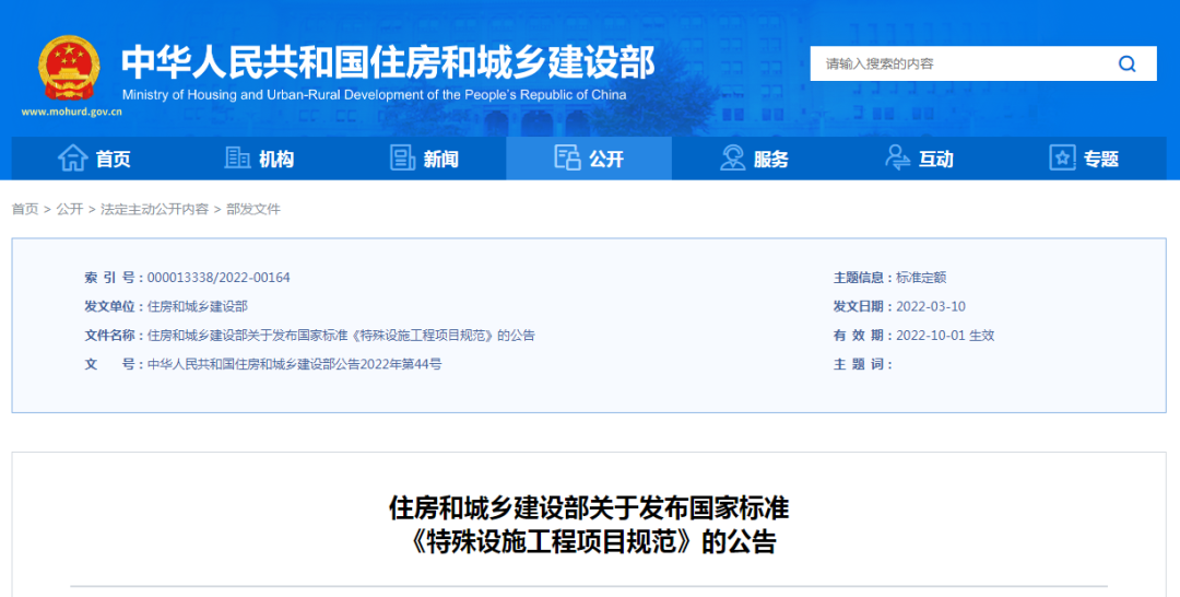 住房和城鄉(xiāng)建設(shè)部關(guān)于發(fā)布國(guó)家標(biāo)準(zhǔn)《特殊設(shè)施工程項(xiàng)目規(guī)范》的公告