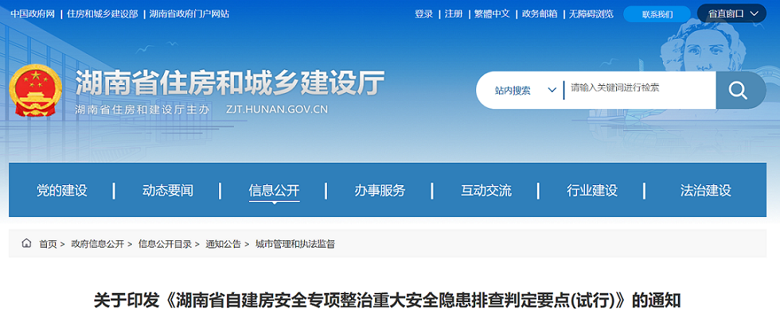 現(xiàn)將《湖南省自建房安全專項整治重大安全隱患排查判定要點(試行)》印發(fā)給你們,請結合自身職責和當?shù)貙嶋H,認真抓好自建房重大安全隱患的排查判定工作。
