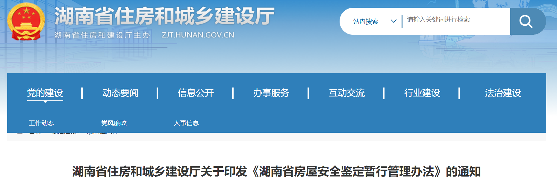 省住建發(fā)布《湖南省房屋安全鑒定暫行管理辦法》