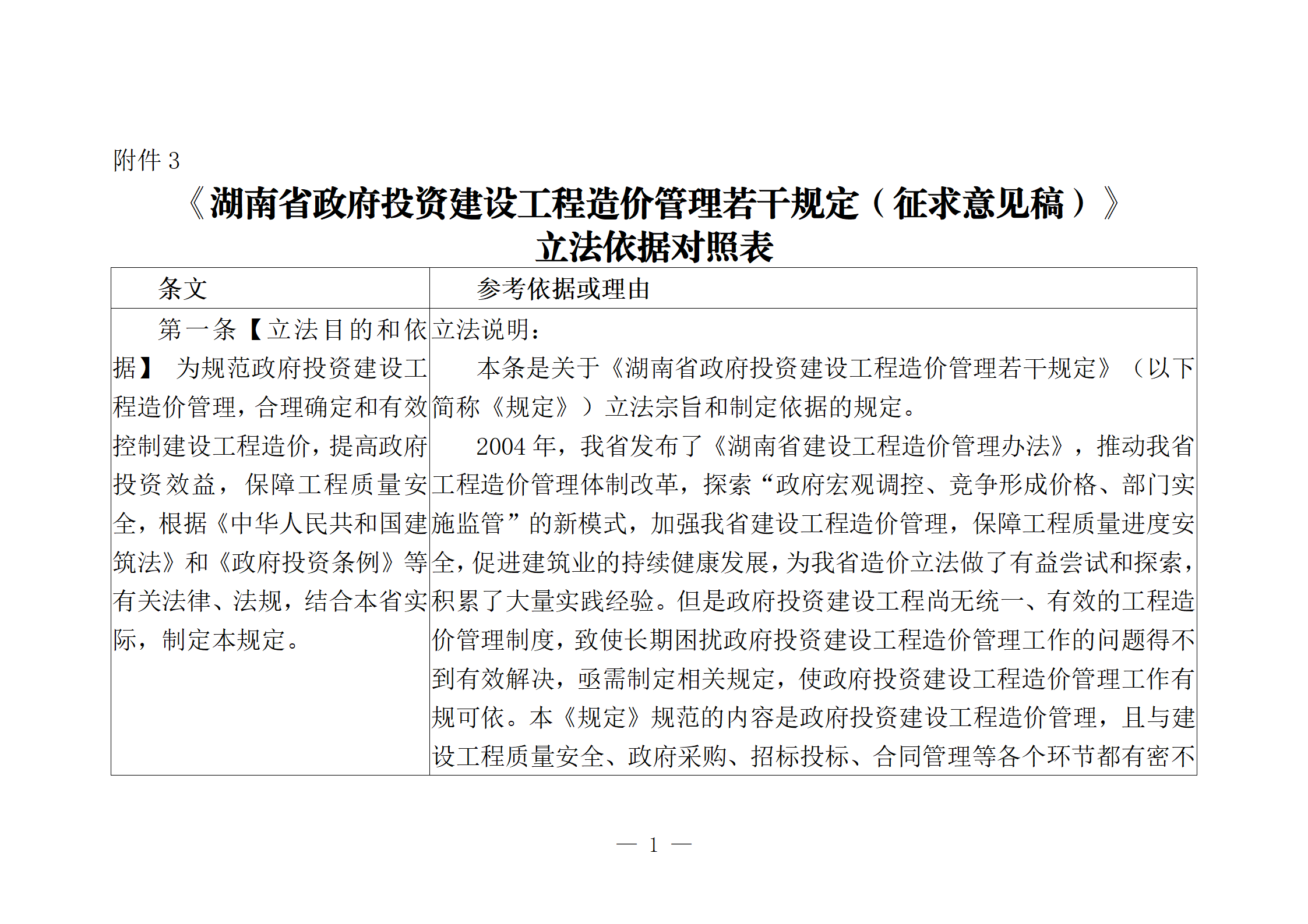 3.《湖南省政府投資建設(shè)工程造價管理若干規(guī)定(征求意見稿)》立法依據(jù)對照表