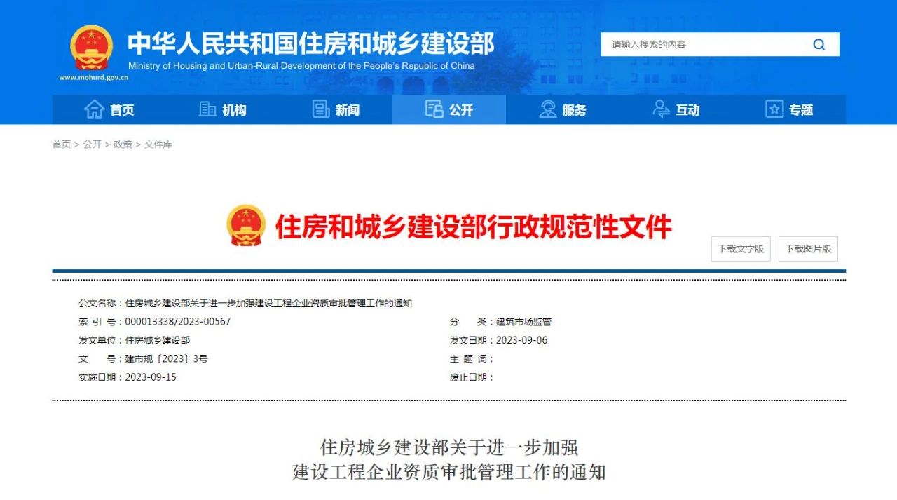 為深入貫徹落實黨的二十大精神,扎實推進建筑業(yè)高質(zhì)量發(fā)展,切實保證工程質(zhì)量安全和人民生命財產(chǎn)安全,規(guī)范市場秩序,激發(fā)企業(yè)活力,近日,住房城鄉(xiāng)建設部發(fā)布《關于進一步加強建設工程企業(yè)資質(zhì)審批管理工作的通知》。
