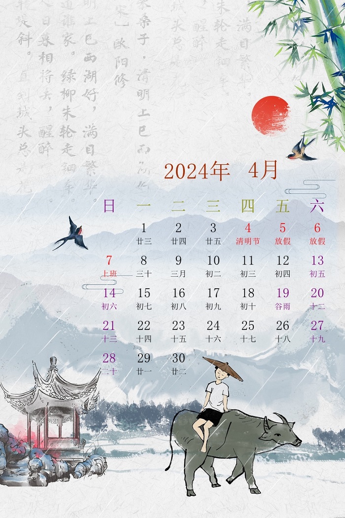 根據(jù)《國(guó)務(wù)院辦公廳關(guān)于2024年節(jié)假日安排的通知》公司2024年清明節(jié)放假事宜如下: 放假時(shí)間:2024年4月4日(周四)至2024年4月6日(周六)放假,共3天,4月7日(周日)正常上班。